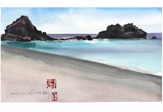 Dos acuarelas de los Peñones de San Cristobal: de la mañana del 22 de Marzo (30 x 40 cm.), el primero; de la mañana del 23 de Marzo (50 x 70 cm.), el segundo; ...única zona y momentos del día sin vientos fuertes...